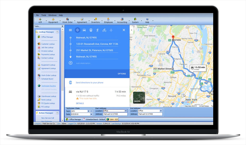 Our mapping and routing software allows you to optimize routes by specific technicians. Within our scheduling board, there’s a route assistance feature that can also rearrange routes for time optimization in terms of the various destinations scheduled.
